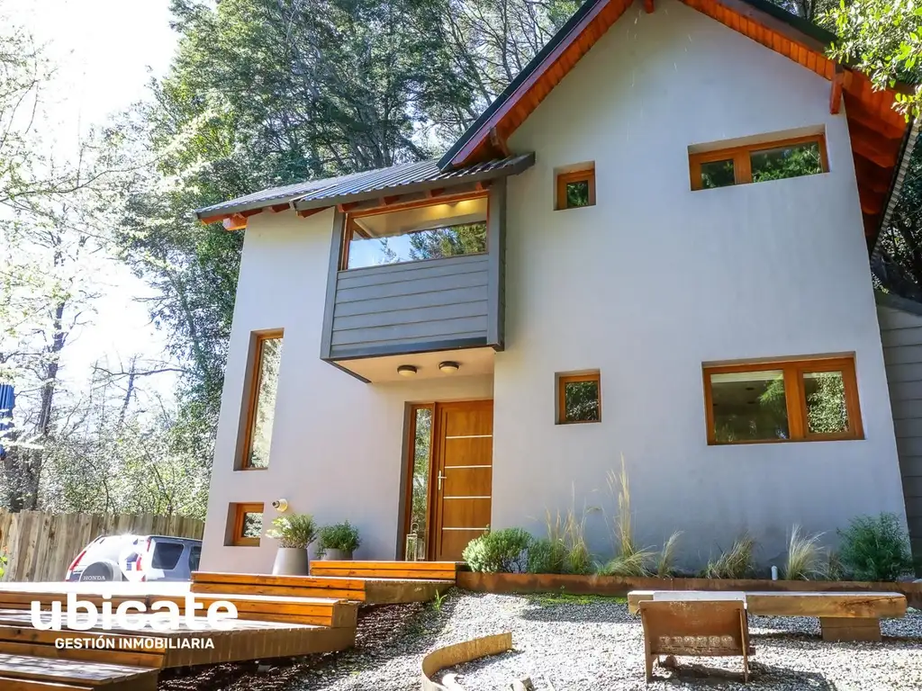 El entorno exterior se caracteriza por la presencia de árboles autóctonos, destacándose un antiguo coihue que aporta identidad, sombra y un valor natural único al terreno.En el frente de la propiedad se desarrolla un amplio deck, ideal para disfrutar del aire libre, que cuenta con fogonero y juego de reposeras de exterior, creando un espacio perfecto para el descanso y los encuentros.