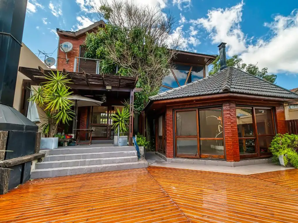 Terraza de 25 m2, patio con pérgola de madera, deck de 50 m2 con parrilla y jardín con riego por aspersión.