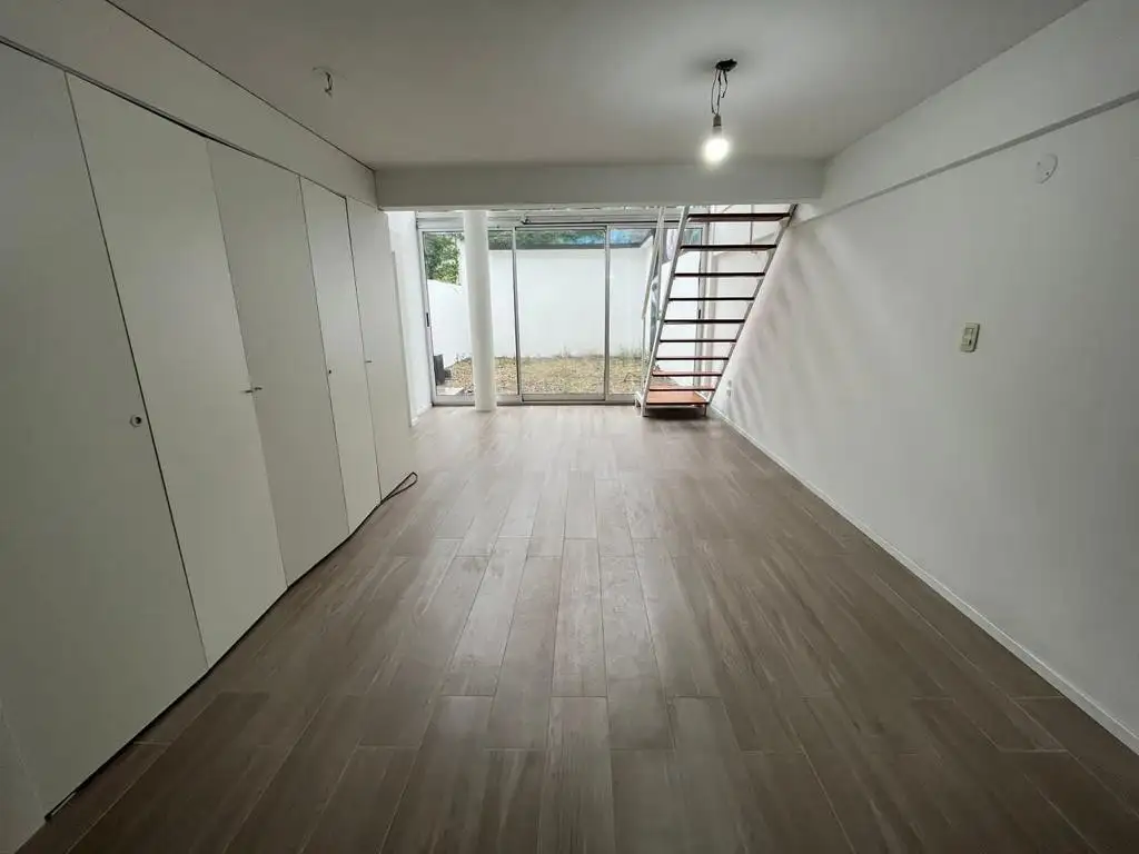 Local con piso de madera, escalera metálica, entrepiso con separador de vidrio esmerilado, cuenta con persiana metálica interna, kitchenette con piso cerámico, mesada de granito y bacha, baño con ventilación natural, abertura de aluminio blanca.