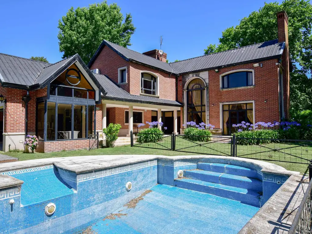 Distribuida en dos plantas. En planta baja cuenta con hall de entrada, amplio living comedor con una gran chimenea y ventanales al jardín, cocina comedor separada con muebles bajo y sobre mesada, lavadero, toilette y escritorio. En planta alta un segundo living, tres dormitorios, el principal de ellos en suite con vestidor (baño con doble bacha, tina de Baño, espacio de ducha y baño con inodoro y bidet separado) y un baño completo con acceso a cada dormitorio con bañera con hidro e inodoro y bidet separado.