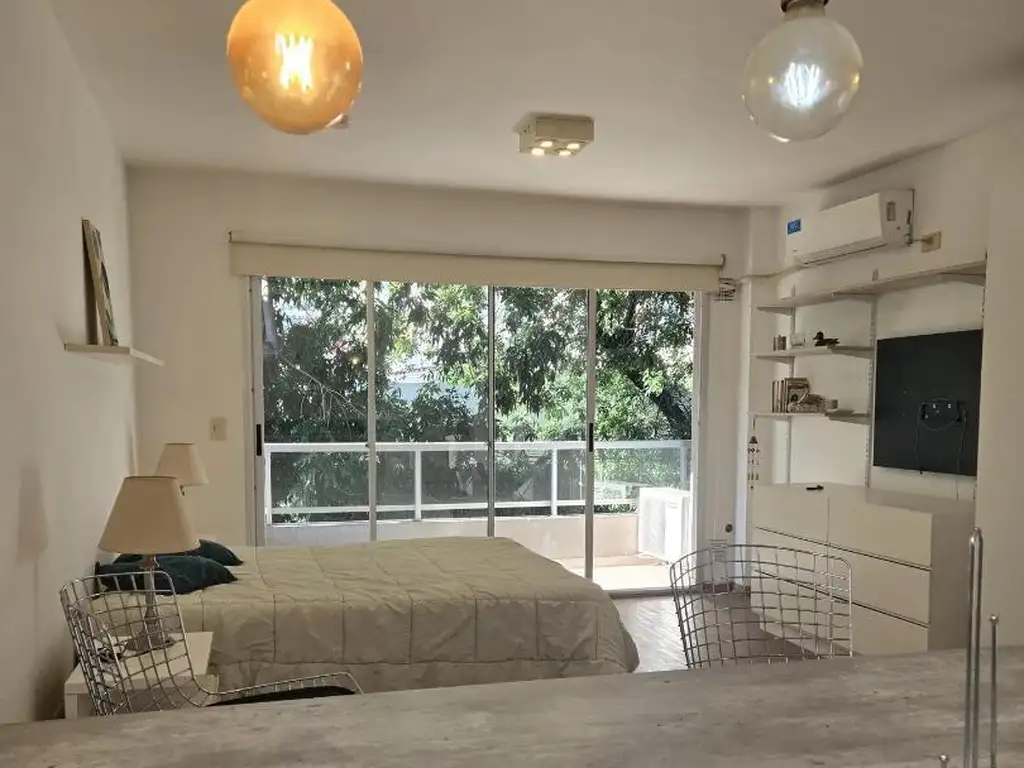 Conexión con el Exterior: Gran ventanal corredizo que integra el ambiente con un balcón propio, ofreciendo una vista abierta y arbolada.