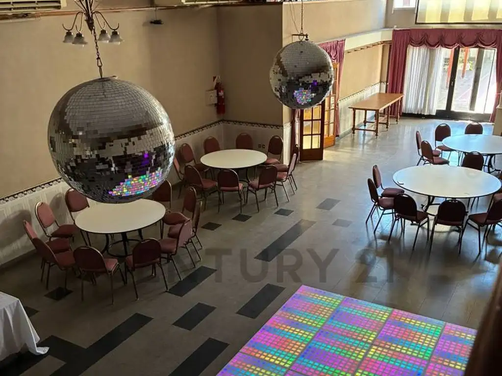 Presentamos una propiedad única por su estado de conservación y funcionalidad, con una superficie total que combina amplios espacios cubiertos y un generoso sector al aire libre con parrillas, este inmueble representa una oportunidad ideal tanto para inversores del rubro gastronómico/eventos como para quienes buscan un espacio de gran escala para otros destinos comerciales (gimnasios, centros culturales, oficinas corporativas, concesionarias o depósitos institucionales). Características Principales: Superficie Cubierta: 341,95 m² desarrollados en doble altura. Superficie Descubierta: 200 m² de expansión. Distribución: Planta baja de gran amplitud con sectores diferenciados y entrepiso balconeado que aporta elegancia y capacidad adicional. Detalles del Inmueble y Equipamiento: El salón destaca por su estética clásica y funcional: Salón Principal: Espacio diáfano con pisos de alto tránsito, cielorrasos con detalles en madera y excelente iluminación natural y artificial (arañas de estilo, pista de baile con luces y luminarias modernas). Sector de Pista de Baile: Área central con piso técnico, equipada con esferas espejadas y sistema de iluminación profesional. Entrepiso y Planta Alta: Estructura con barandas de madera y detalles de molduras que balconean al salón principal, ideal para recepciones VIP o áreas administrativas. Climatización y Confort: Equipos de aire acondicionado frío/calor de gran capacidad instalados, listos para operar. Área de Servicios: Zona de barra, cocina equipada y mobiliario completo (mesas circulares y sillas tapizadas en excelente estado). Opciones de Operación: La propiedad se ofrece con flexibilidad absoluta para el comprador: Venta del Inmueble: USD 278.500.- Venta del Fondo de Comercio: USD 27.000.- (Incluye cartera de clientes, habilitaciones vigentes y equipamiento completo de sonido, luces y mobiliario). Operación Total: USD 305.500.- Ventajas Competitivas: Estado Impecable: No requiere reformas estructurales para comenzar a trabajar. Potencial de "Otros Destinos": Su estructura de planta libre y doble altura permite una fácil adaptación a diversos rubros comerciales o institucionales. Ubicación: Emplazado en una zona de fácil acceso y consolidada.