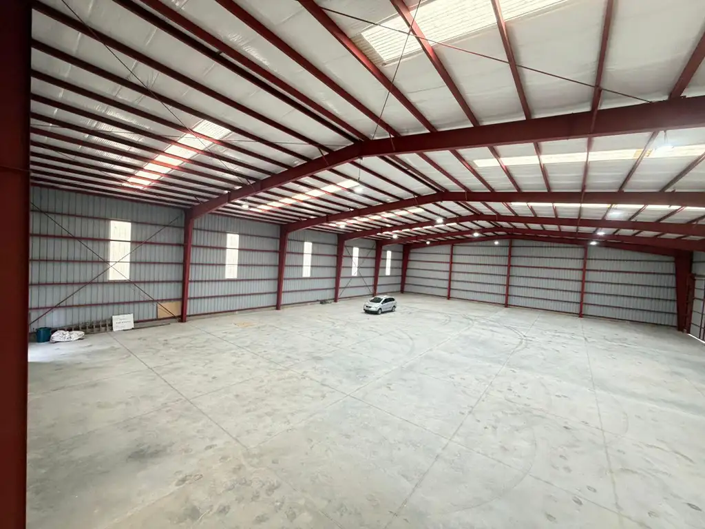con 7,90 mts de altura a la cabreada, y 8,60mts a la cubrera, con chapas traslucidas para una excelente iluminacion natural.