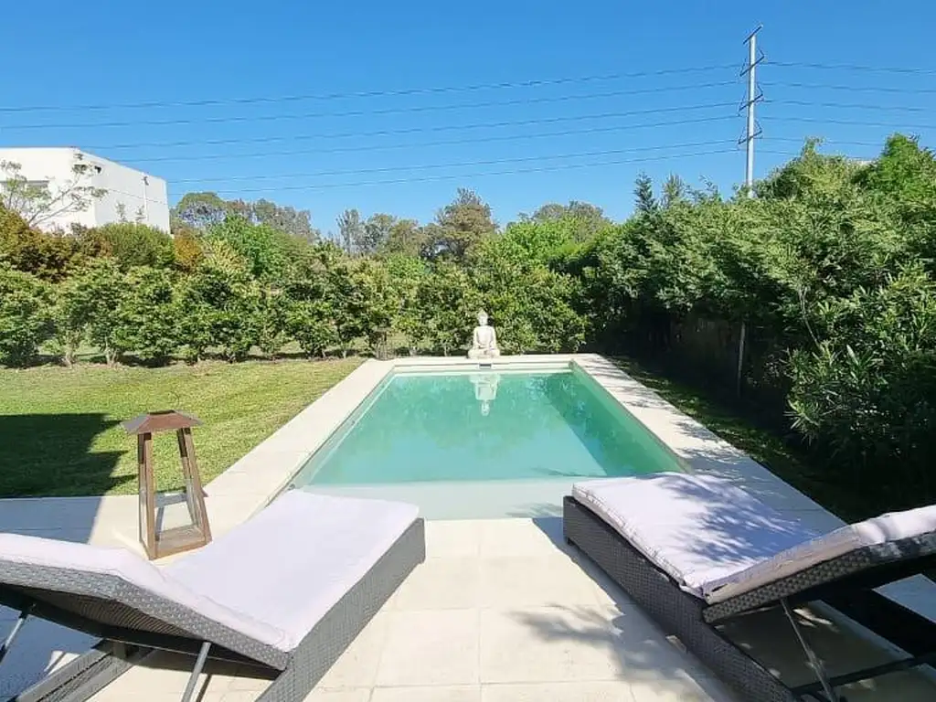 Afuera, la galería con parrilla se abre al jardín verde con pileta, un lugar pensado para vivir el verano a pleno, entre risas, amigos y momentos inolvidables.