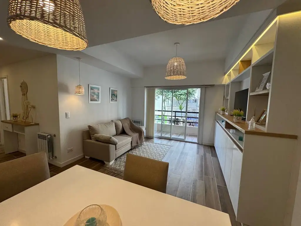 Living comedor al frente con salida al balcón. Cocina con barra totalemnte equipada.