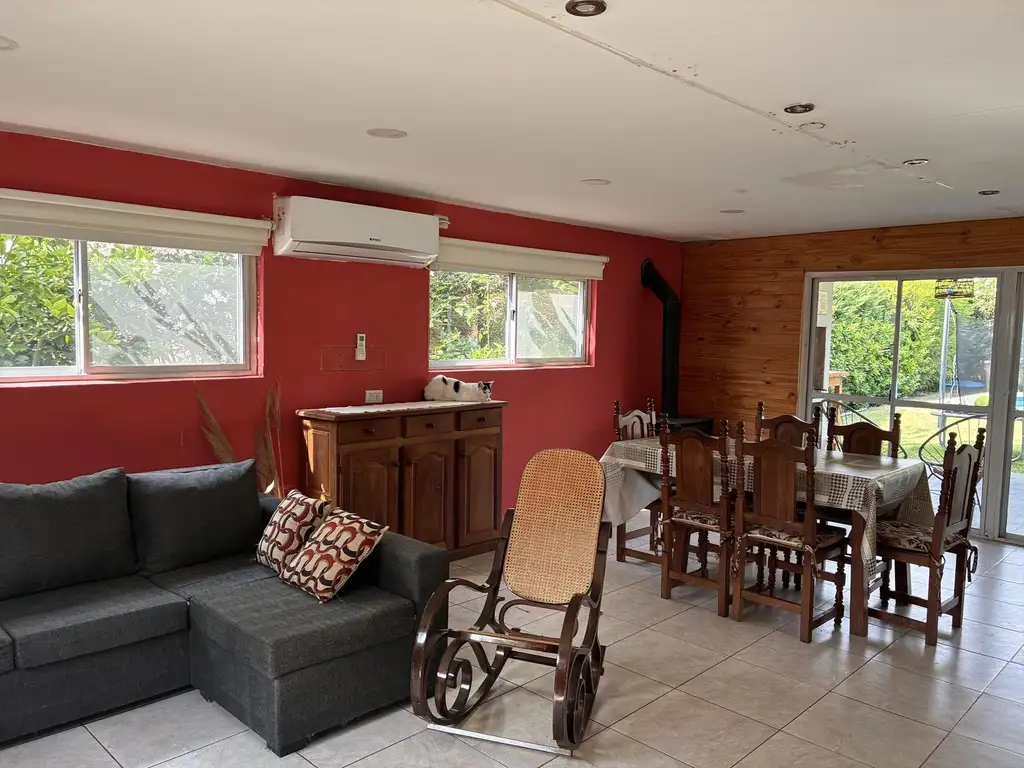 Todos los ambientes cuentan con aire acondicionado, y el living se destaca por su salamandra, que aporta calidez y confort.