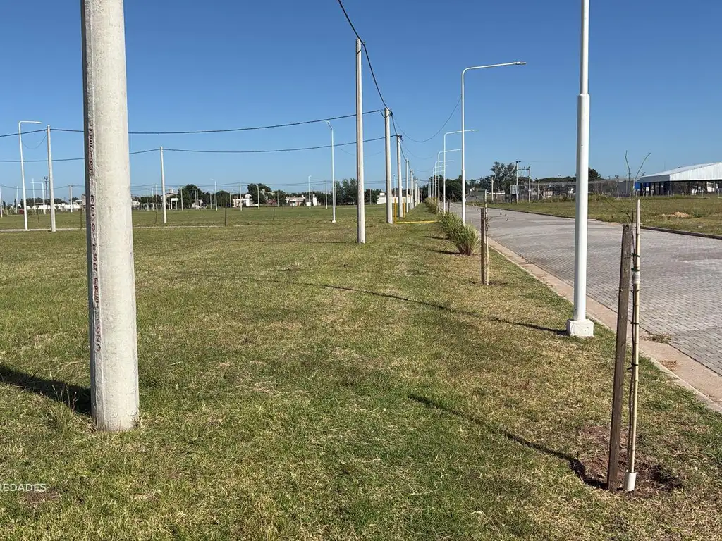 Posee 10 metros de frente por 41,27 metros de fondo, con orientación oeste al frente y laterales norte-sur. El loteo cuenta con calles asfaltadas, cordón cuneta de hormigón, redes de gas natural, agua potable, cloacas, electricidad, telefonía e internet, además de forestación, alumbrado público LED y plaza pública equipada.