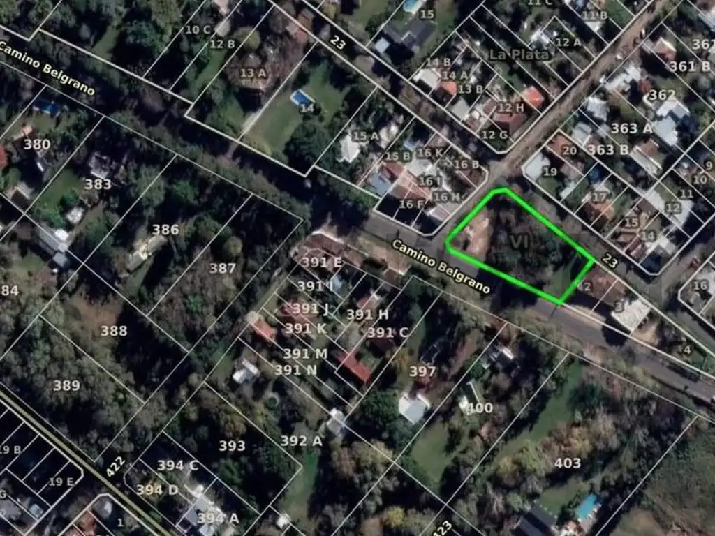 Excelente lote ubicado en esquina triple, con salida a tres calles: Camino Belgrano, 422 y 23, una ubicación privilegiada y de alto tránsito.