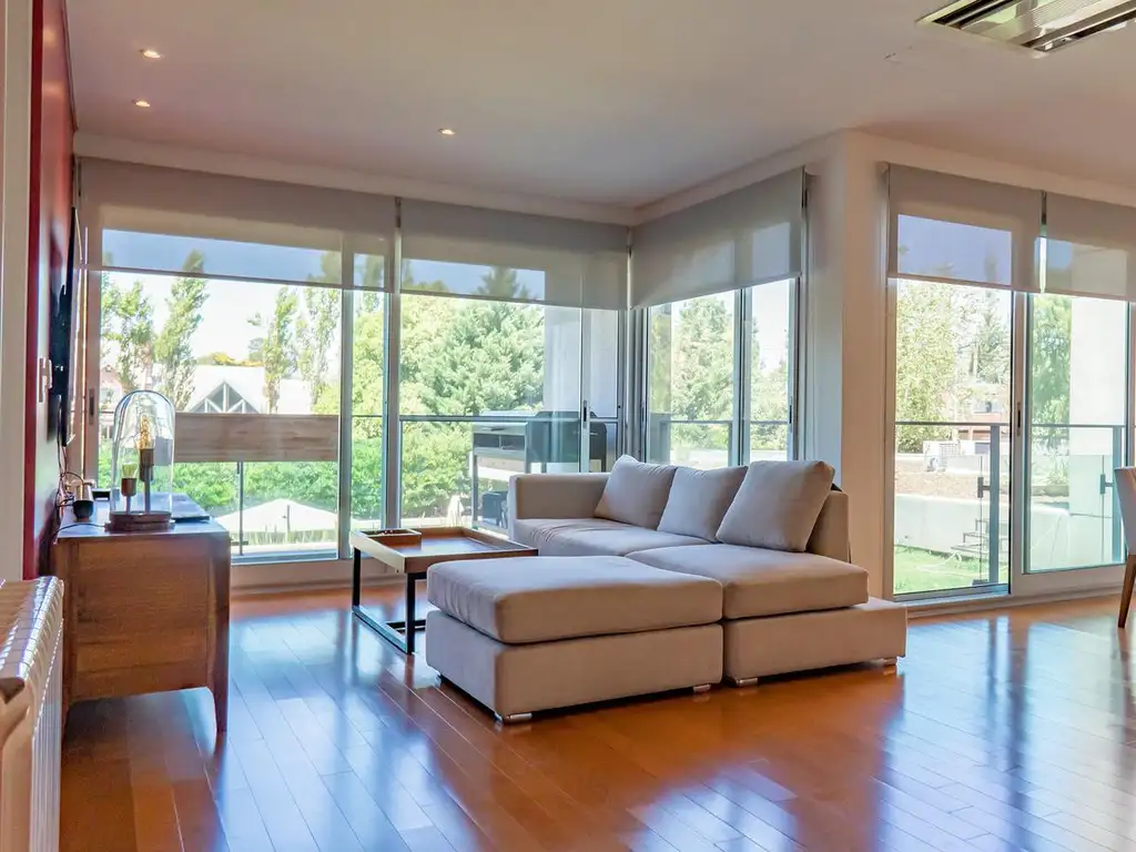 UNIDAD: El departamento se encuentra ubicado en PB y se compone de un amplio y luminoso living comedor con salida al balcón que conecta directamente con el jardín y la pileta, cocina semi integrada al living comedor a través de una barra, dormitorio en suite con grandes placares, baño social, lavadero independiente, balcón y cochera de gran tamaño y comodidad (Apta 4x4).