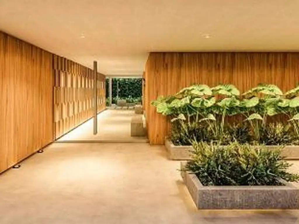 Ubicado en el barrio residencial de Gral Pacheco, en la provincia de Buenos Aires se desarrolla el edificio de viviendas en un lote y manzana atípicos. El volumen propone retiros en todas sus caras, tomando líneas paralelas a cada una de ellas, generando luego toda la envolvente del edificio y proponiendo un mismo lenguaje de fachadas pero con un tratamiento particular para cada una de ellas. Al frente del lote, en la planta baja, se enmarca un acceso en el centro, visualmente permeable, que se materializa con un pórtico de hormigón visto y cerramiento de vidrio, creando un gran foco de acceso al edificio y dejando a ambos lados del mismo, dos portones metálicos ciegos que cierran este frente. Interiormente esta planta, es libre y abierta, utilizando toda su superficie semicubierta para la ubicación de las cocheras y un patio al fondo con unos espacios de expansión semicubiertos y también con áreas verdes. En el centro de la misma se conforma el hall de acceso donde se destaca la materialidad, sobre todo, de la madera y la iluminación que se apoya mayormente en los muros revestidos de la misma y en los canteros verdes, resaltándolos y aportando calidez al espacio. En el frente, sobre los pisos superiores, sobresalen unos volúmenes de hormigón donde se ubican las expansiones tanto de los dormitorios como de los estares, intercalándose en cada unidad. La materialidad se expresa mediante las losas de hormigón como cintas que cosen todo el conjunto horizontalmente, y los muros ciegos de hormigón se transparentan con carpinterías y parasoles de madera conformando el entramado en forma vertical del edificio. En el contrafrente se desdibuja la simetría del frente, quebrando y escalonando la fachada, planteando un juego de planos verticales -los parasoles y las carpinterías que en este caso van intercalando su posición en cada nivel de las plantas tipo, lo cual también se replica en las dos fachadas laterales dándole movimiento y marcando de forma clara un contraste con el frente, utilizando los mismos recursos para darle homogeneidad. Cuenta, además, con una terraza accesible con espacios verdes pensados como expansión del edificio, armados con equipamiento exterior para diversos usos con vistas en todos los frentes. El conjunto estará materializado, desde el punto de vista constructivo, con una estructura de tabiques de hormigón armado con un sistema de losas sin vigas en las plantas tipo y con estructura de transición en la planta baja. El pórtico del frente de acceso al edificio se materializa con hormigón visto y los laterales se cierran con portones metálicos corredizos para el acceso a las cocheras. Los muros exteriores del edificio de las viviendas estarán conformados por los mismos tabiques de hormigón visto que llevarán un tratamiento para su cara exterior y del lado interior se revestirán en placa de roca de yeso tipo durlock o similar con lana de vidrio rolac plata 50mm para evitar el puente térmico. Los interiores se compondrán tanto de ladrillo hueco para la división entre unidades, como de construcción en seco con panalería del tipo durlock o similar para los interiores de las mismas. Las carpinterías y puertas de vidrio en planta baja serán tipo Blindex con manijon en chapa prepintada tono a definir y para las plantas tipo, serán en perfilería de aluminio pre pintado negro tipo Hydro o equivalente con vidrios de seguridad tipo DVH para asegurar aislación acústica y térmica. Las puertas serán tipo puerta placa enchapada en madera (tipo/tono a definir) con marco de chapa doblada BWG 14 y bisagras ocultas. A nivel terminaciones interiores, los muros llevarán pintura tipo látex (color a definir) y para los cielorrasos se considerará hormigón visto en los estares y dormitorios y placa de roca de yeso tipo durlock o similar de junta tomada suspendida en las cocinas y baños. Los pisos interiores llevarán revestimiento tipo porcelanato en medidas similares al 60x60 y para los baños se considerará en las paredes y pisos revestimiento de porcelanato en formatos 30x60 / 60x60 a definir. Para las terminaciones exteriores, los muros serán de hormigón a la vista con tratamiento para exterior o similar textura. Los pisos exteriores en la planta baja constarán de de cemento alisado en las partes peatonales semicubiertas, de porcelanato en el interior del hall cubierto y de baldosones de cemento y piedra drenante en las áreas verdes junto con la vegetación. En los balcones de las viviendas irá un piso también de porcelanato con barandas en vidrio templado embutido en hormigón del tipo incoloro transparente. Los muebles de cocina (tanto alzadas como bajo mesadas) serán en madera laqueada color blanco mate y llevarán mesadas de granito (color a definir). Los artefactos serán todos eléctricos. Para los muebles de los baños también se considera madera laqueada color blanco mate con herrajes nacionales y mesadas en silestone (tono a definir). En cuanto a los artefactos serán todos marca ferrum y griferías FV o similar. Con respecto a la instalación de aire acondicionado, se proyectará un sistema multisplit con tendidos de cobre para los equipos interiores tipo split mural frio/calor. Se dejarán las terminales y los desagues de los mismos con el posicionamiento de las unidades exteriores a ubicar en la terraza y para las instalaciones sanitarias se consideran cañerías de termofusión con un sistema de agua caliente por alimentación de termotanques centrales a gas ubicados en la sala de planta baja. Ubicación estratégica A 4 Min. de Santa Barbara. 4 Min de Nordelta. 8 Min. de Camino de los Remeros. 9 Min de Sunny. 12 Min. Brickell Center.