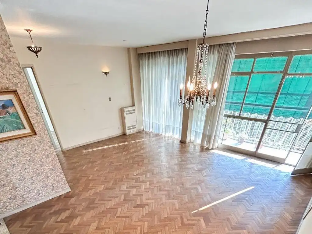 Living comedor amplio de 8 x 6.50 mts2 con pisos de roble de Eslavonia, con salida a amplio balcón corrido con vista a parque Rivadavia, dos dormitorios, cocina completa, comedor diario con aire acondicionado.