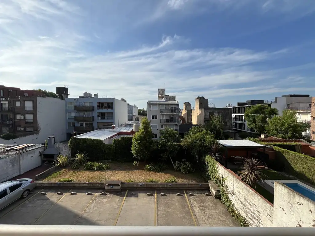 EXCELENTE DEPTO LAGUZZI. SEGUNDO PISO CONTRAFRENTE. HALL, AMPLIO LIVINGCOMEDOR CON SALIDA A BALCON CORRIDO, COCINA COMEDOR CON MUEBLES COMPLETOS, CONEXION PARA LAVARROPAS, HALL CON PLACARD, BAñO COMPLETO, DORMITORIO CON PLACARD Y SALIDA A BALCON, CLAEFACCION POR TIRO BALANCEADO, UN EQUIPO DE AIRE. COCHERA FIJA CUBIERTA Y BAULERA.