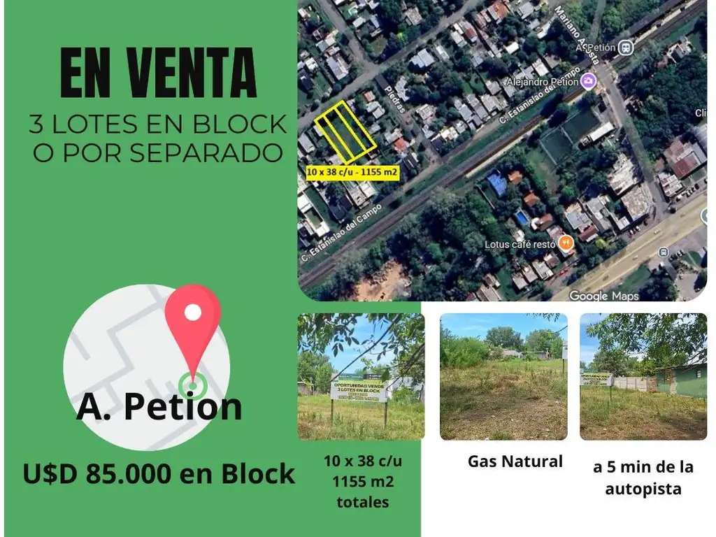 CONDICIONES DE VENTA: Escritura inmediata. Consulte por valor individual o precio promocional por el paquete de los 3 lotes.