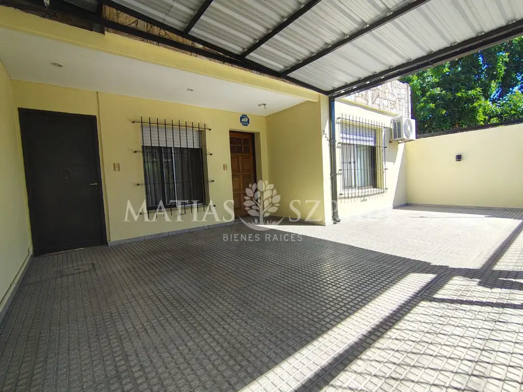 A continuación (comunicado por cerramiento corredizo) comienza una segunda propiedad con cocina completa y living comedor con vista al fondo de la propiedad. En este sector, toilete y bajo escalera con espacio para lavarropas. Salida lateral a patio descubierto que comunica a la vez con el fondo con parque, parrilla y cuarto de guardado.