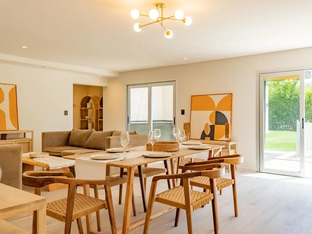 Tipología y distribución: casa de 3 dormitorios y escritorio, desarrollada en una planta, sobre un terreno de 800 mt2. Se accede desde la cochera a la cocina, con vista al frente y muy luminosa, la cocina cuenta con una isla con 5 hornallas y purificador, grifería de primera calidad y una barra divisoria, qu divide la cocina del comedor diario. Hacia la izquierda encontramos el lavadero independiente y toilette de recepción para invitados. E living comedor cuenta con una escalera que lleva a un sector comodín que puede ser utilizado como escritorio o espacio de lectura. Atravesando el comedor diario nos encontramos con el living comedor con vista al jardín, con espacio para colocar una mesa amplia y un juego de sillones.