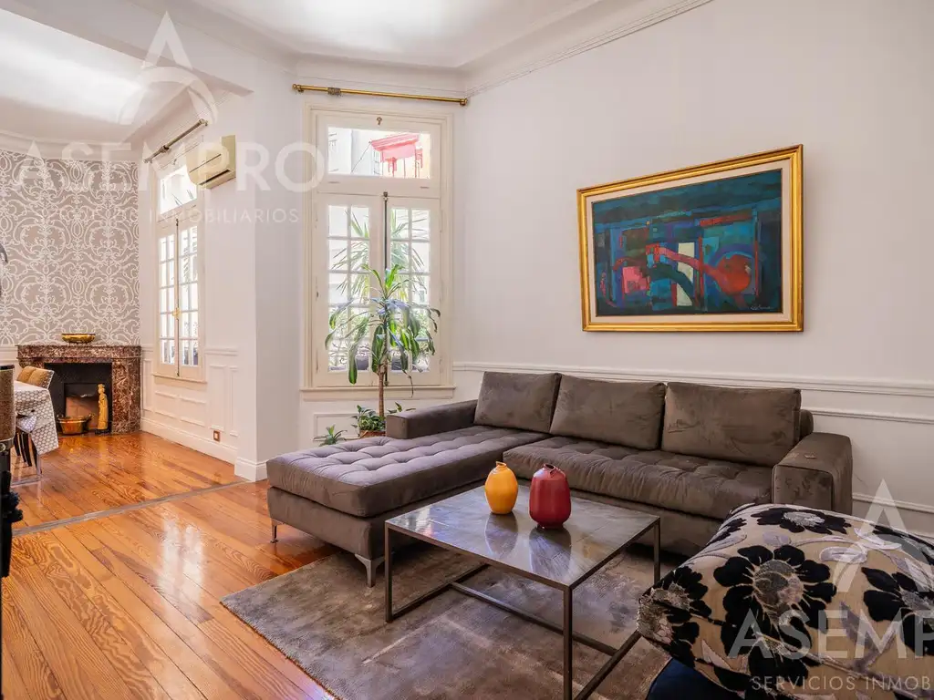 Reciclado íntegramente con respeto por los materiales originales, conserva la nobleza de sus pisos de pinotea y los calcáreos originales en impecable estado. La recepción de doble altura integra un amplio living comedor, con ventanales que inundan el espacio de luz. Un pasillo distribuye hacia tres dormitorios de generosas dimensiones, el principal en suite, todos con placares de piso a techo.