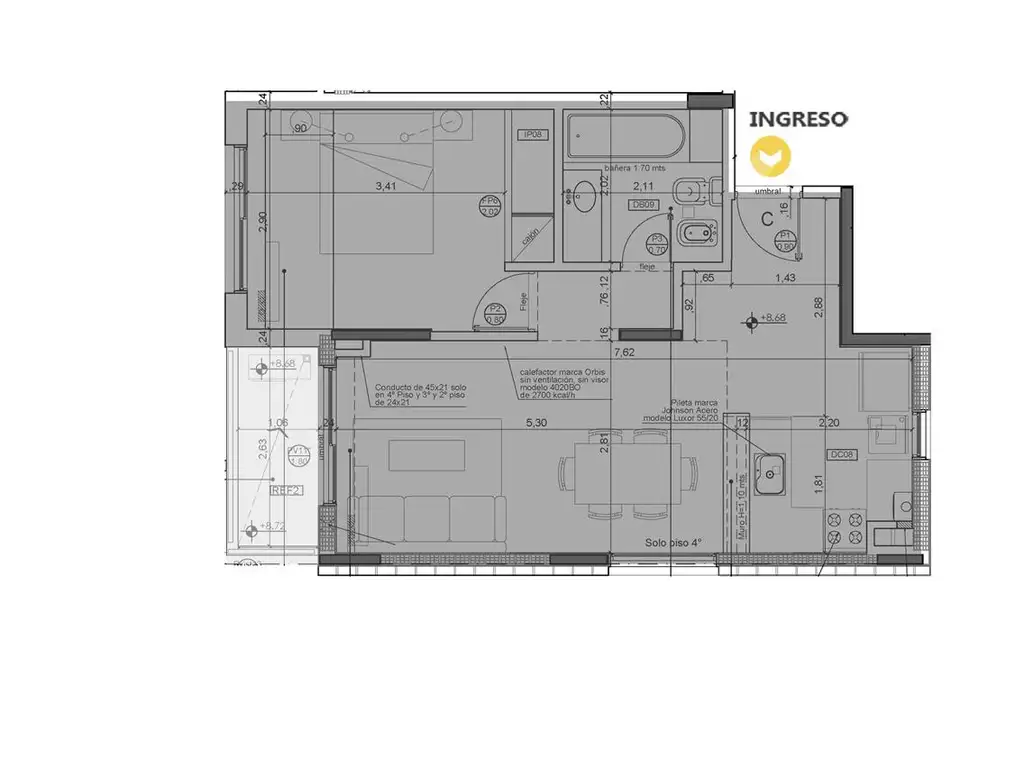 Pisos de porcelanato en living comedor; pisos de ingeniería en dormitorio; carpinterías de aluminio; placares empotrados con interiores completos; baños con artefactos en loza esmaltada blanca brillante; griferías de primera línea; cocina equipada con horno, anafe y calefón de primera marca; instalaciones nuevas y detalles de categoría.