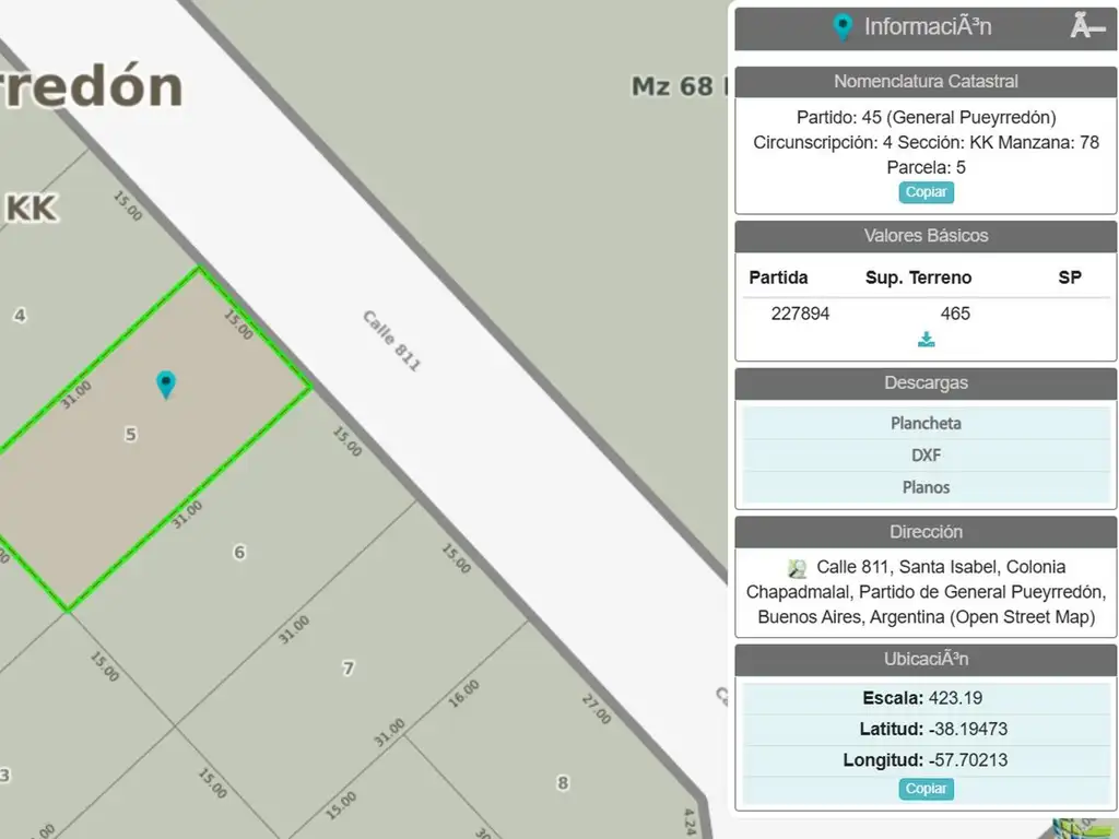 Datos catastrales: Partido: 45 (General Pueyrredón), Circunscripción: 4, Sección: KK, Manzana: 78, Parcela: 5.