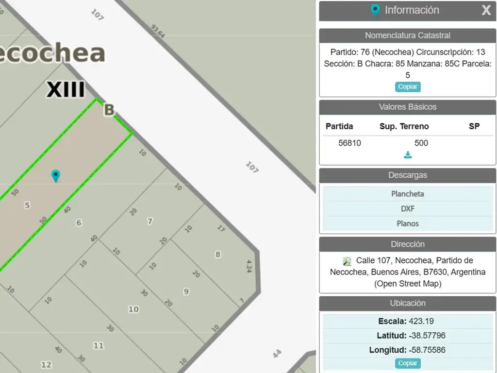 Datos Catastrales Circunscripción XIII sección B chacra 85 manzana 85 C lote 5 Partida 076-056810-4