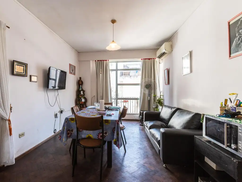Al ingresar se accede a un hall de recepción amplio, que distribuye hacia el living comedor de buenas dimensiones, con pisos de parquet en muy buen estado y salida directa al balcón al frente.