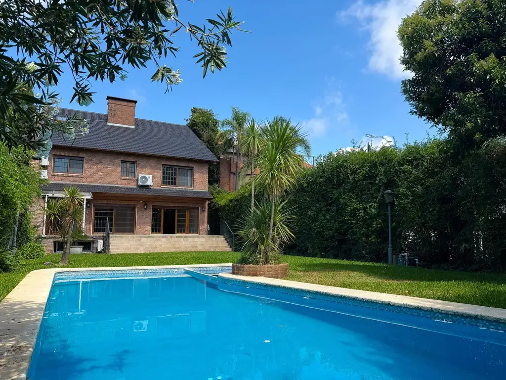 Amplio retiro verde de frente . Ingreso a la casa a través de un gran hall de recepción, hacia la derecha toilette y escritorio al frente. Luminoso living con chimenea y salida al jardín. Comedor formal independiente con salida a la galería. Cocina con muebles sobre y bajo mesada, conexión de lavavajillas. Salida a galería con parrilla y lavadero integrado en placard.