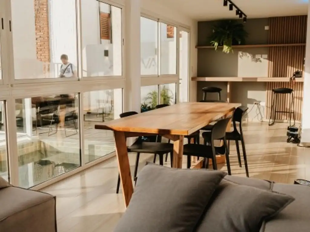 Cocina y comedor separados amoblados con sus respectiva mesada, bajo mesada y alacena.