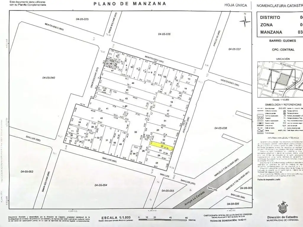 El lote se encuentra ubicada en calle Ayacucho 580, Barrio Guemes a una cuadra del Bv San Juan y frente al Hotel de la Cañada, Es una zona en expansion, con varios emprendimientos gastronomicos y comerciales, cercano a Patio Olmos y al Paseo de los Artesanos.