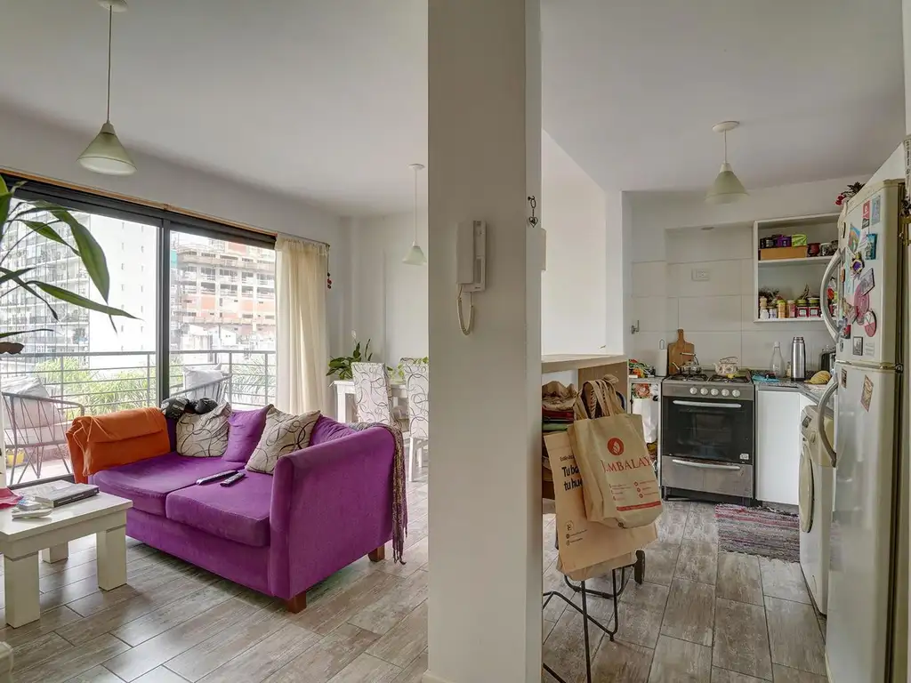 La unidad cuenta con cocina integrada, equipada con muebles sobre y bajo mesada, artefacto, gas y espacio de almacenamiento. El Living comedor es amplio y cómodo, con salida a un balcón al contra frente con vista abierta. El baño es completo y la habitación principal posee placares de piso a techo, ofreciendo gran capacidad de guardado.