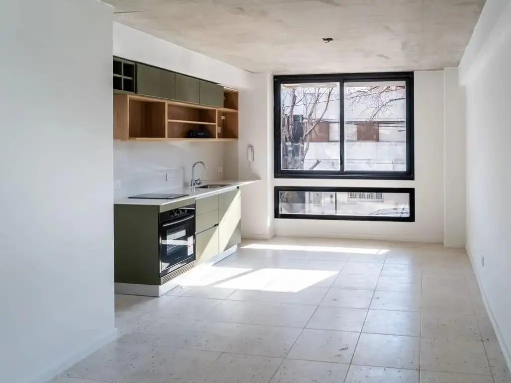 Pisos de calidad en todos los ambientes; Carpinterías exteriores con amplios ventanales que optimizan la iluminación natural; Placard empotrado en dormitorio; Cocina con mobiliario completo; Baño con sanitarios y griferías de diseño moderno; Instalaciones nuevas; Sistema eléctrico en toda la unidad; Agua caliente central