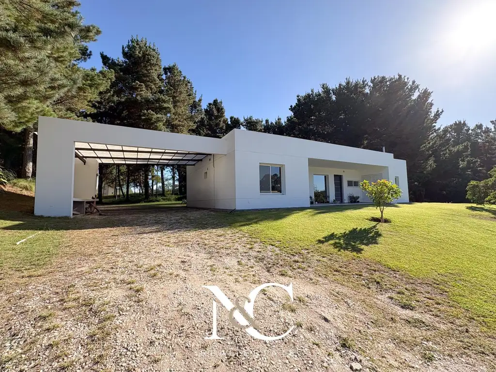 Esta casa se desarrolla en una sola planta, con living comedor con cocina integrada al ingresar; en el costado izquierdo dos dormitorios que comparten un baño completo y en el costado derecho el dormitorio en suite con hidromasaje. En el exterior, se encuentra el hermoso y extenso jardín y galería con lavarropas y parrilla cubierta. A la izquierda, la propiedad dispone de cochera semicubierta para dos vehículos.