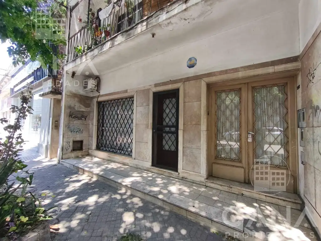 Departamento en planta baja al frente, único en su planta, ubicado en un edificio de solo tres unidades, lo que garantiza baja densidad y tranquilidad. Se destaca por contar con entrada directa desde la calle, con frente vidriado que brinda visibilidad comercial, además de ingreso por el edificio y un tercer acceso adicional por pasillo.