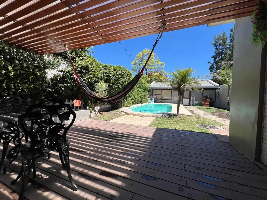 En el exterior se destaca un deck con piso de PBC, piscina de material de 6 x 3 metros y un quincho de 25 m2, ideal para reuniones y disfrute familiar.