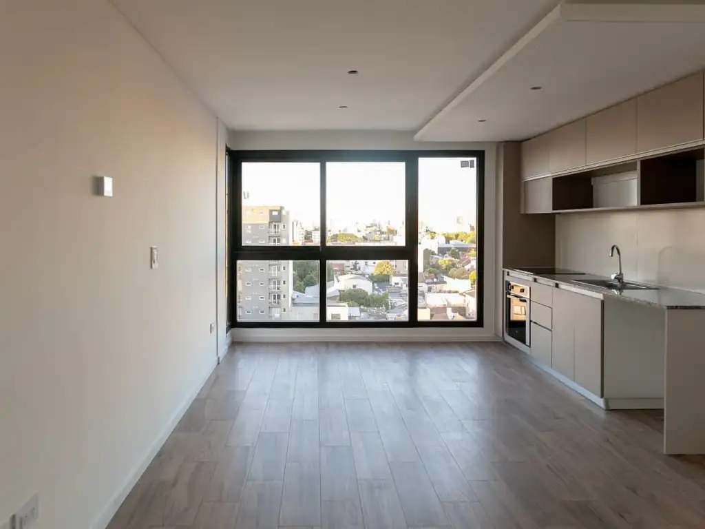 Monoambiente a estrenar amplio al c/frente con cocina equipada con espacio de lavarropas.
