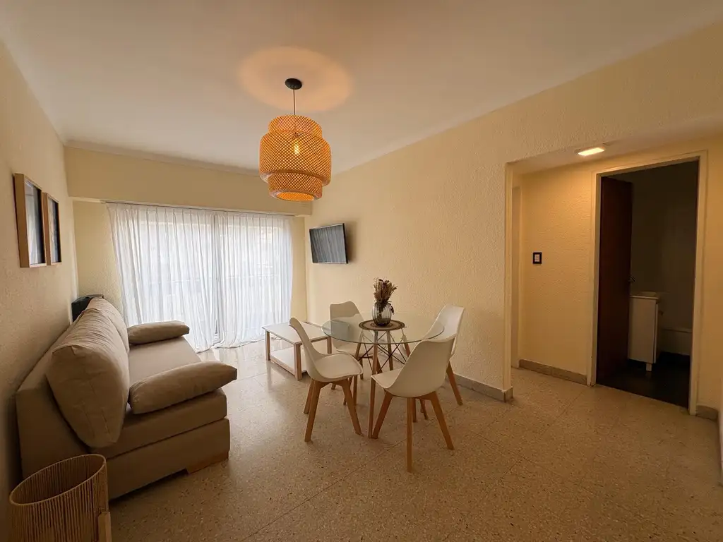 Unidad en primer piso: Al ingresar encontramos un amplio living comedor a la calle con balcon frances, cuenta con vista lateral al mar. La cocina esta separada, es cómoda y funcional. Dormitorio al frente con placard y balcón. Baño completo con bañera. El sistema de calefacción es por tiro balanceado.