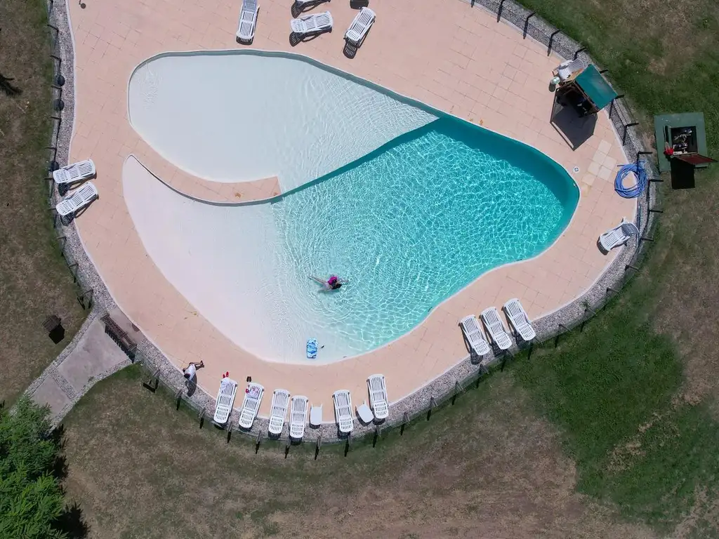 Piscina descubierta y terrazas al río
