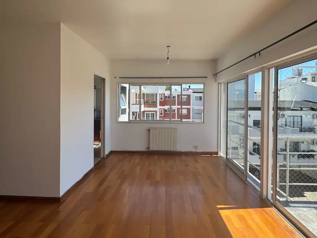 El departamento está ubicado en el segundo piso al contrafrente, muy luminoso. Cuenta con ingreso a un amplio living-comedor, cocina separada con espacio para lavarropas, salida a un balcon desde el living, 2 dormitorios con placard, uno de ellos con baño en suite, y otro baño completo. Calefaccion por radiadores, agua caliente por caldera Peisa.