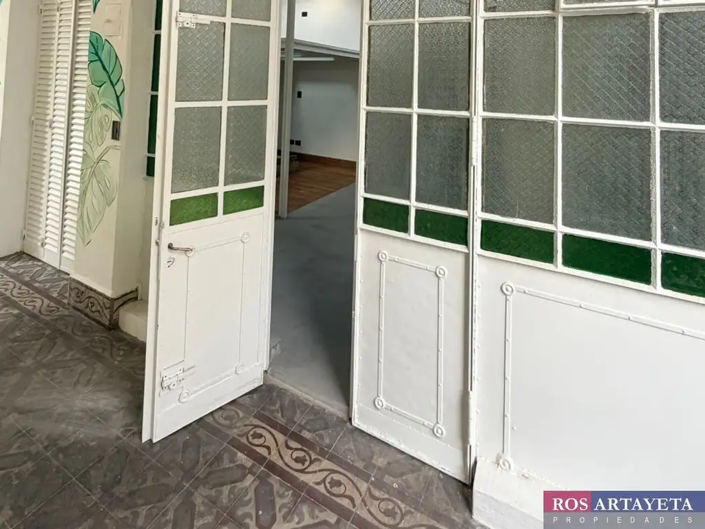 Departamento de 63 m2 cubiertos, en edificio de principio de siglo XX. En segundo piso sin ascensor. En excelente estado, recién reciclado a nuevo. Living de 3.80 X 4.80 con pisos de pinotea. Techos de doble altura. Estufas de tiro balanceado y dos aire acondicionados frío - calor. Escalera rebatible que lleva a un entrepiso de 4 X 3 que puede oficiar de escritorio o un segundo dormitorio con piso transparente para que pase la luz. Muy luminoso. Puertas y ventanas de madera de pino Spruce, con postigones de la misma madera y persianas de hierro. Una de las ventanas tiene reja en lugar de persiana. Un amplio hall de distribución donde se puede armar el comedor, con ventanal en hierro con vidrios repartidos de techo a piso y de pared a pared. Amplia baulera. Cocina con heladera y lavarropas (preguntar). Baño con ducha. Dormitorio 4.50 X 3.50 con amplio vestidor. El departamento tiene dos entradas desde un amplio pasillo semicubierto que, a pesar de ser de uso común, sirve como lugar para colocar un par de reposeras o bien una mesa con sus sillas y comer un asadito con amigos al aire libre.