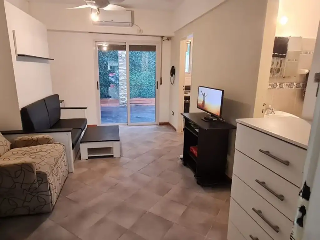 Apto credito. Departamento monoambiente con patio 36m2 de los cuales 25m2 son cubiertos y 11m2 descubiertos. Planta baja al Contrafrente con orientación SUDESTE.