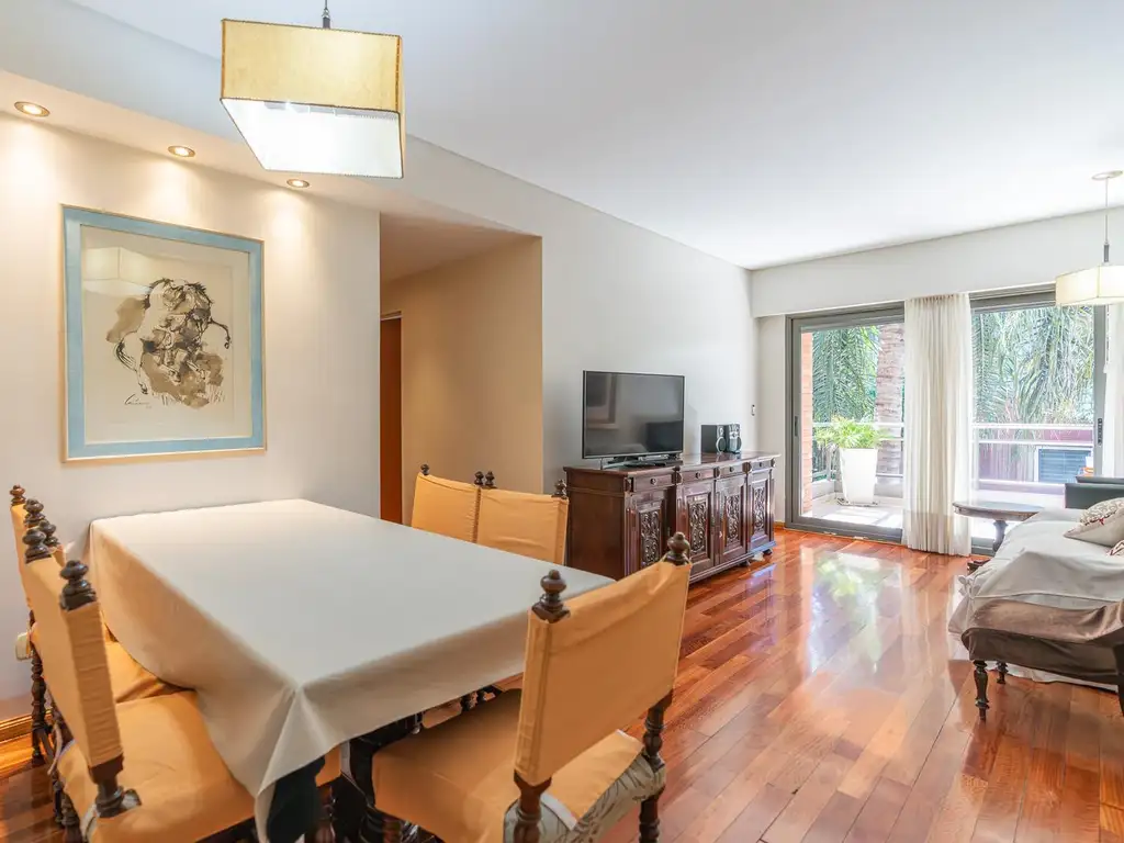Moderno semipiso de 4 ambientes con cochera. Patio y balcón terraza al frente.