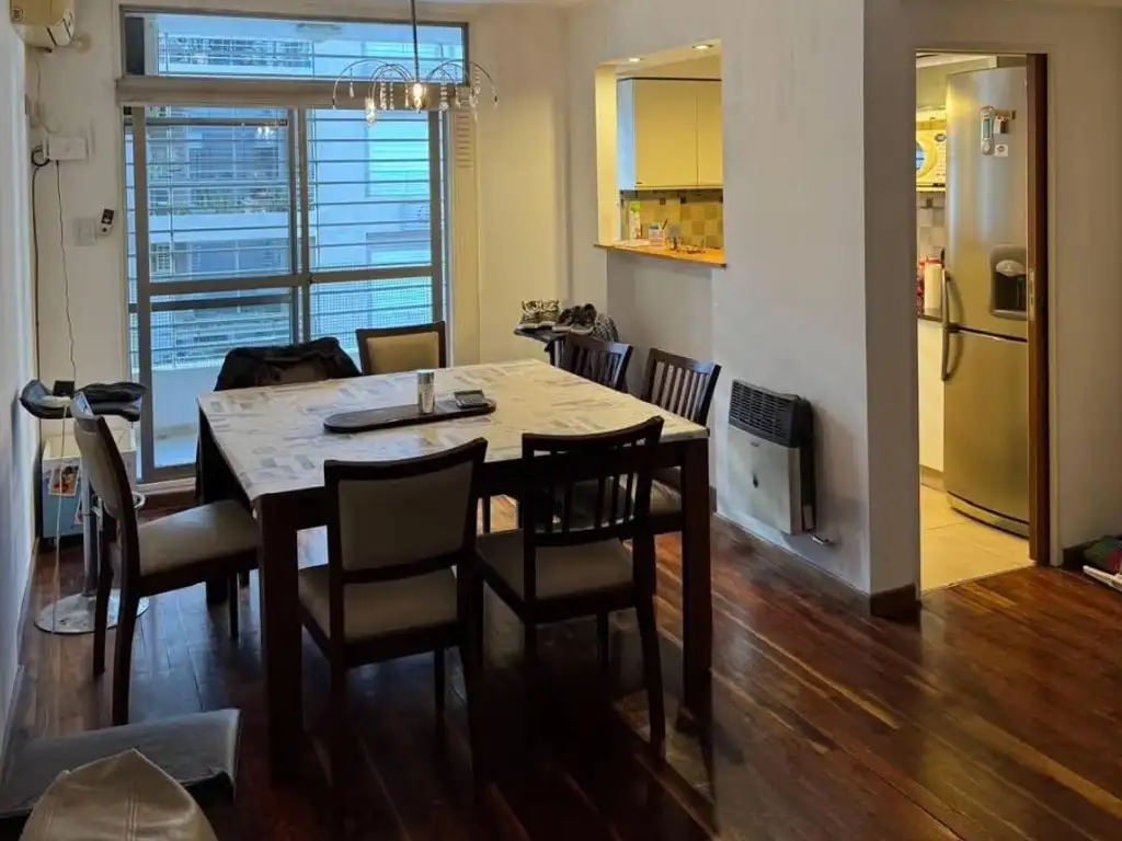 La unidad cuenta con dos dormitorios, uno de ellos con vestidor, dos baños (uno en suite), cocina americana integrada, living comedor y sector para lavarropas, ofreciendo una distribución cómoda y funcional.
