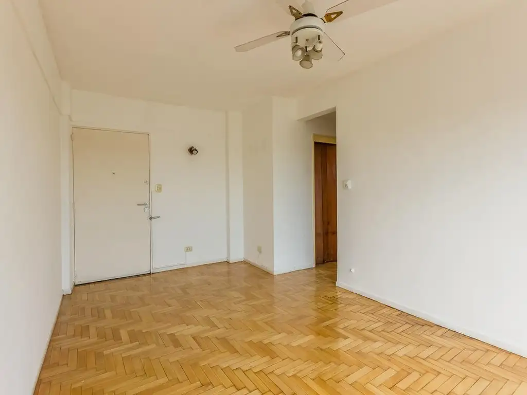 Amplio living comedor con piso de parquet lustrado y salida al balcón con vista totalmente abierta.