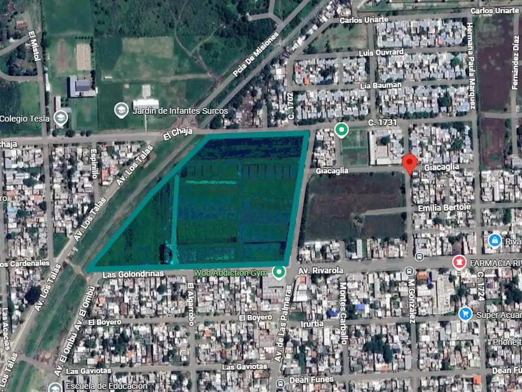Importante fracción de terreno ubicada en la ciudad de Pérez, dentro del Barrio Las Palmeras, delimitada por calles Las Golondrinas, Las Palmeras, El Chajá y las vías del Ferrocarril.
