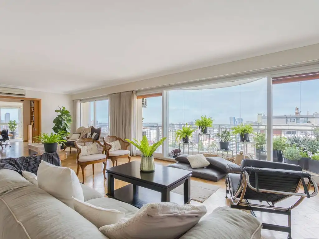 Palier privado que da acceso a un amplio living con balcón corrido y comedor, toilette y placard de recepción. Escritorio.
