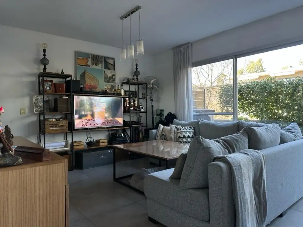 En la planta alta se encuentran dos dormitorios y dos baños, brindando privacidad y funcionalidad. El área de living comedor se destaca por su luminosidad y se vincula al exterior mediante amplios ventanales, con salida directa a una terraza privada con vista abierta a jardines y espacios comunes del complejo.