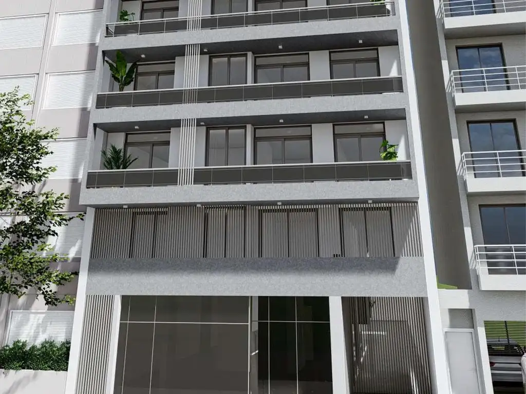 Edificio de calidad y diseño compuesto por edificios de dos torres, una torre de 10 pisos con departamentos de 2 y 3 ambientes, y otra de 8 pisos con departamentos de 1 y 4 ambientes. Control de acceso en puerta principal, ascensores y espacios comunes.