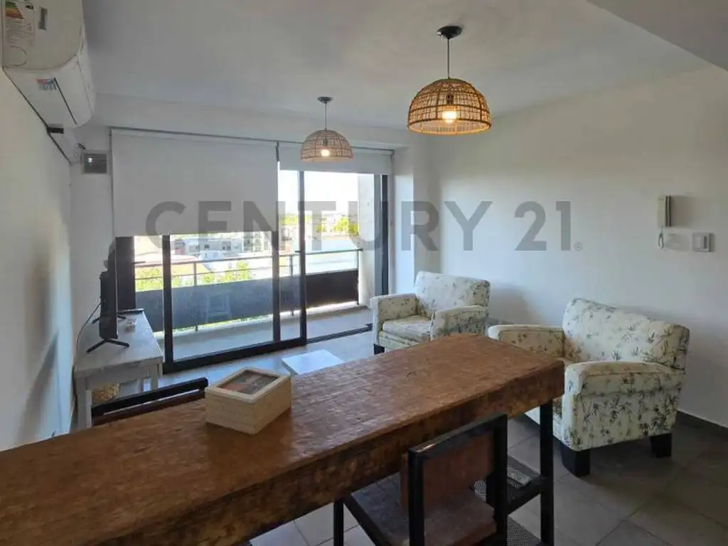 Se enctrega semiamoblado: Cama con colchon, cortinas, mesitas, calefón, barra de desayuno con banquetas, sillones, luminarias y aires acondicionados.