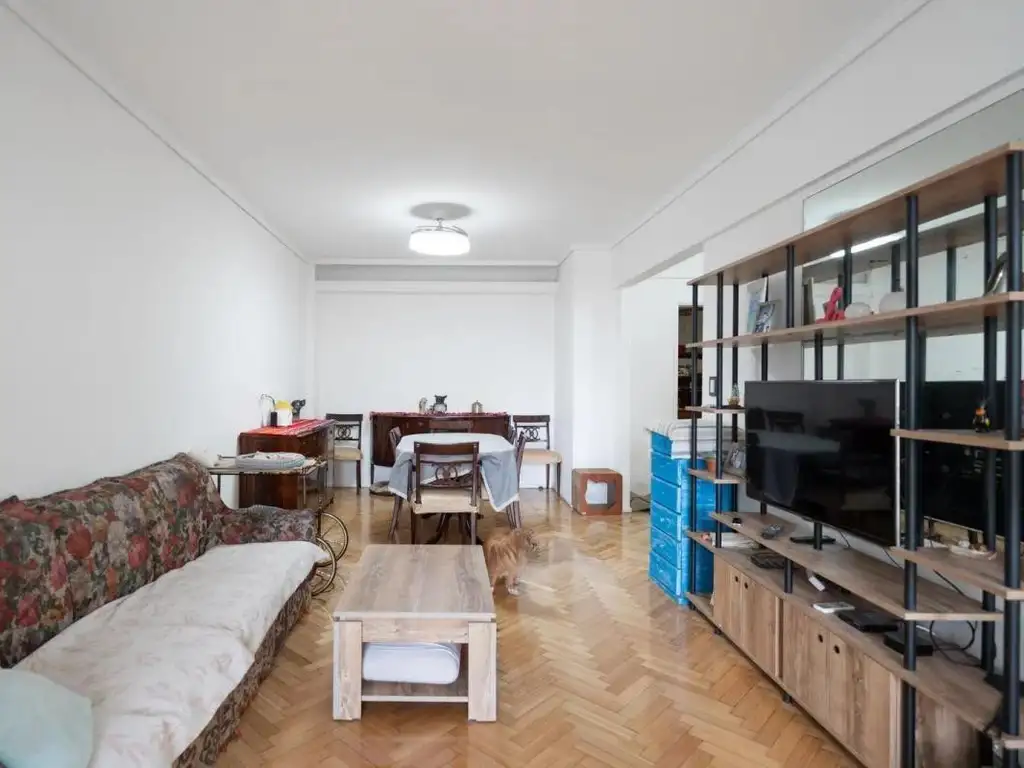 Amplio living-comedor con salida al balcón y aire acondicionado frío/calor. Piso recién pulido.