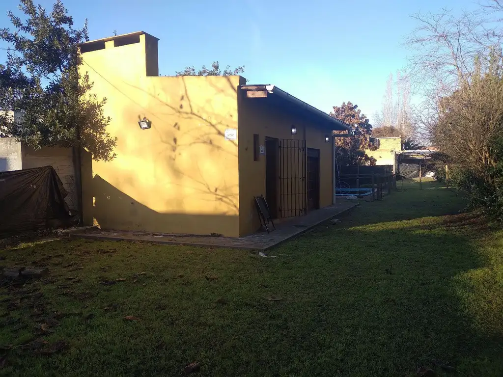 Incluye un cómodo ambiente tipo quincho con baño completo, living-comedor, parrilla, mesada con pileta y barra. Además, cuenta con piscina de fibra de 3 x 7 m, parque arbolado, fogón para asador y espacio para varios autos.