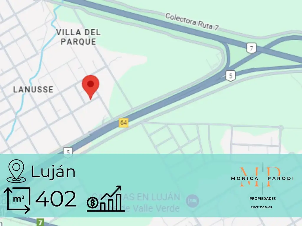 Mónica Parodi Propiedades comercializa esta propiedad ubicada en una zona estratégica, a minutos de la bajada de colectora sur del Acceso Oeste, con rápida conexión a arterias principales y excelente proyección de crecimiento.