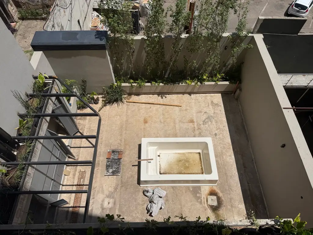 Departamento ubicado en el piso 1, con patio, piscina y quincho con parrillero.